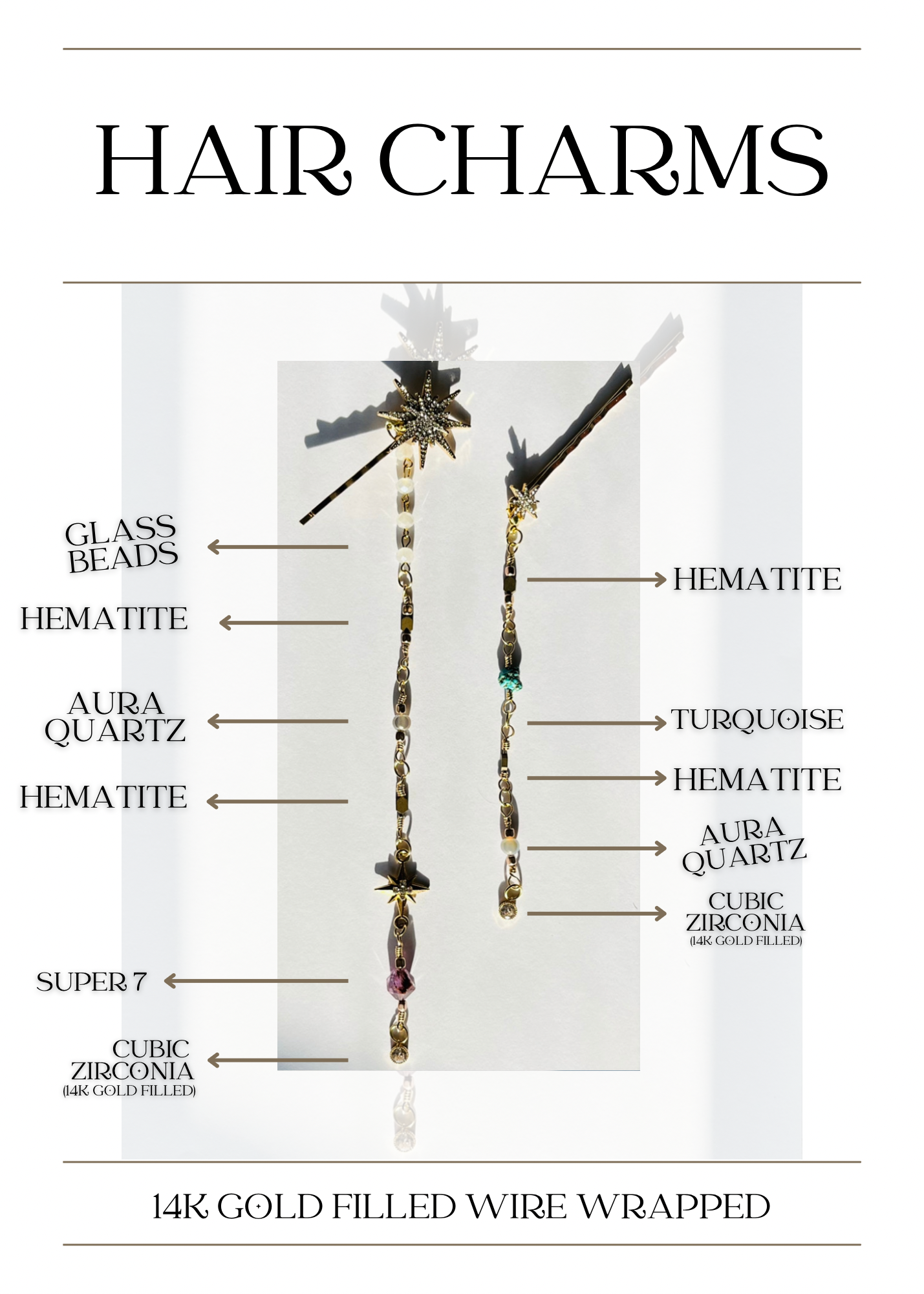 The creation of these "Protective Hair Charms" was inspired by the beautiful piece of spiritual jewelry called, "Maang Tikka".